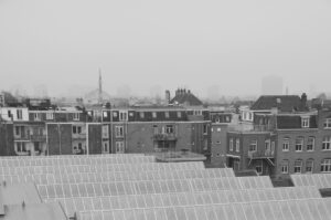 Een ontmoeting in één van de drie huizen waar hij mag verblijven, zes verdiepingen boven zijn favoriete eetcafé. We kijken uit op de creatieve broedplaats de Hallen in Amsterdam én zijn verleden: de plek waar hij woonde en zorgde voor zijn inmiddels overleden vader.